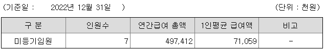 미등기임원의 평균연봉은 7105만원이고 직원수는 7명입니다.