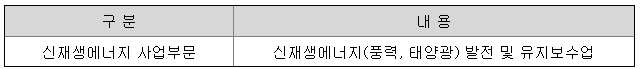 보고서 작성일을 기준으로 당사가 연결실체(지배회사 및 연결대상 종속회사)를 포함하여 영위하고 있는 사업은 신재생에너지 사업부문입니다.