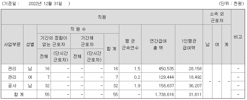 전체 평균연봉은 3161만원이고 직원수는 55명입니다.