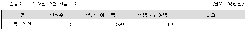 미등기임원의 평균연봉은 1억 1800만원이고 직원수는 5명입니다.