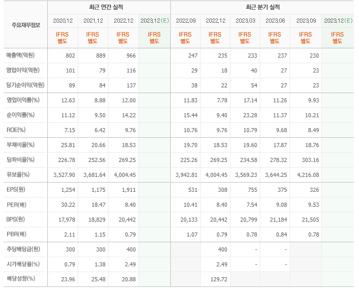 2022년 매출은 966억, 영업이익은 116억, 당기순이익은 137억입니다. 그리고 영업이익률은 12.00%입니다.