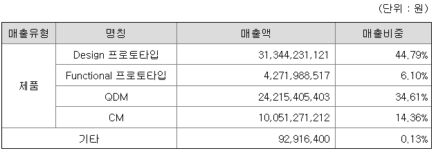 당사는 설립 이후 지금까지 고부가가치 High Fidelity 영역에 포함되는 프로토타입을 핵심 사업으로 성장해 왔으며 그 과정에서 고객사의 다양한 요구에 대응하며 전후방으로 사업을 확장해 왔습니다. 현재 CNC 정밀가공기술 기반의 Design 프로토타입 사업부와 Functional 프로토타입 사업부, 그리고 고품질 QDM(신속금형) 제작기술을 기반으로 다품종 소량생산 서비스를 제공하는 QDM 사업부를 주력으로 하고 있으며 2022년부터 제조업 외주화의 최종 단계인 CM(Contract Manufacturing) 부문을 신규 사업부로 승격하여 제조업 밸류체인 수직계열화를 완성한 One-Stop Manufacturing Solution 기업입니다.