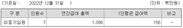 미등기임원의 평균연봉은 1억 5600만원이고 직원수는 7명입니다.