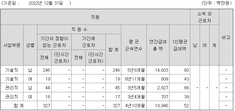 전체 평균연봉은 5200만원이고 직원수는 327명입니다.