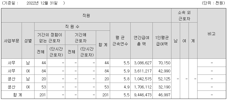전체 평균연봉은 4699만원이고 직원수는 201명입니다.