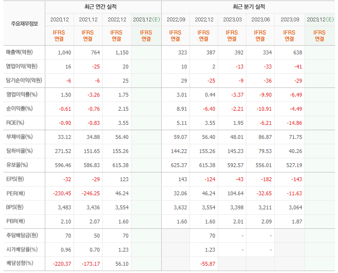 2022년 매출은 1150억, 영업이익은 20억, 당기순이익은 25억입니다. 그리고 영업이익률은 1.75%입니다.