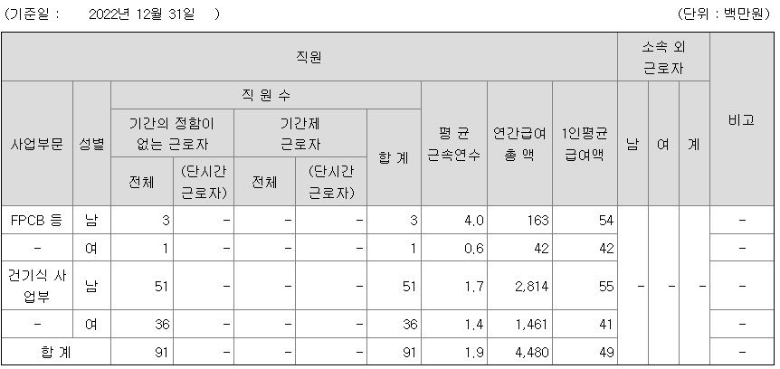미등기임원의 평균연봉은 8400만원이고 직원수는 5명입니다.