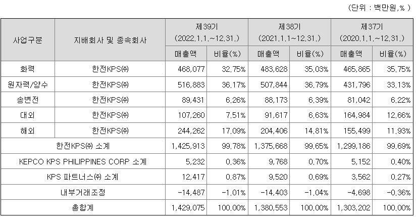 기타사업 KPS파트너스(주) ○ 건물(시설)관리용역업 외 한전KPS(주) 등