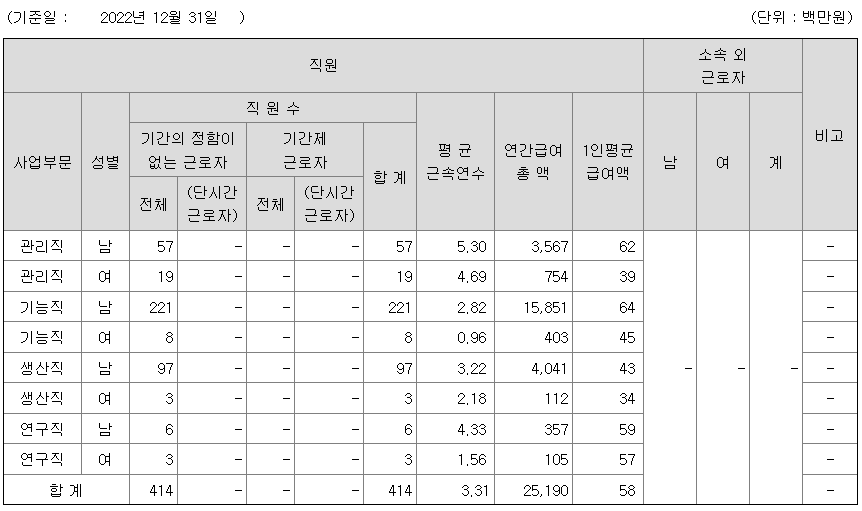 미등기임원의 평균연봉은 1억 500만원이고 직원수는 22명입니다.