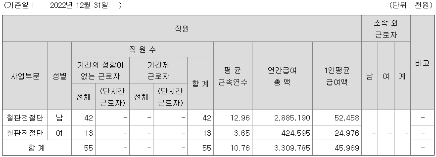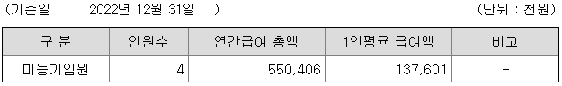미등기임원의 평균연봉은 1억 3760만원이고 직원수는 4명입니다.