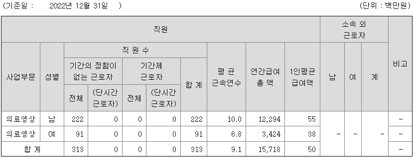 인피니트헬스케어 연봉 2022년 기준 공시자료