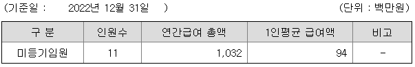 미등기임원의 평균연봉은 9400만원이고 직원수는 11명입니다.