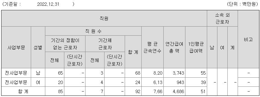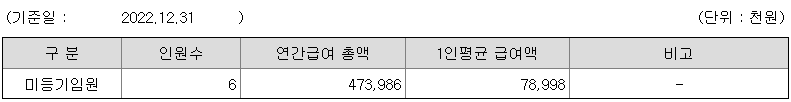 미등기임원의 평균연봉은 7899만원이고 직원수는 6명입니다.