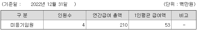 미등기임원의 평균연봉은 5300만원이고 직원수는 4명입니다.