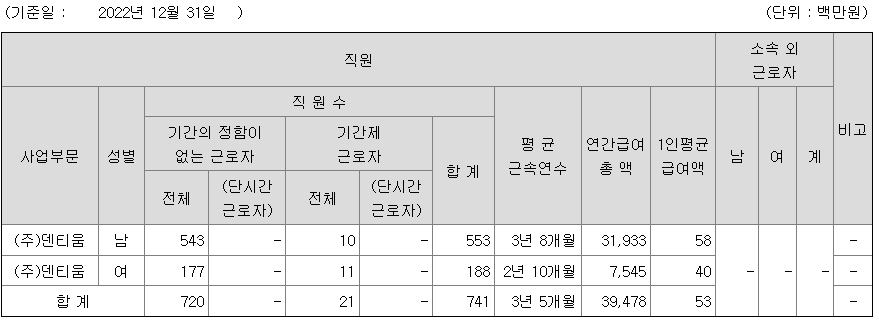 | 덴티움 | 여 | 188 | 2년 10개월 | 40 |