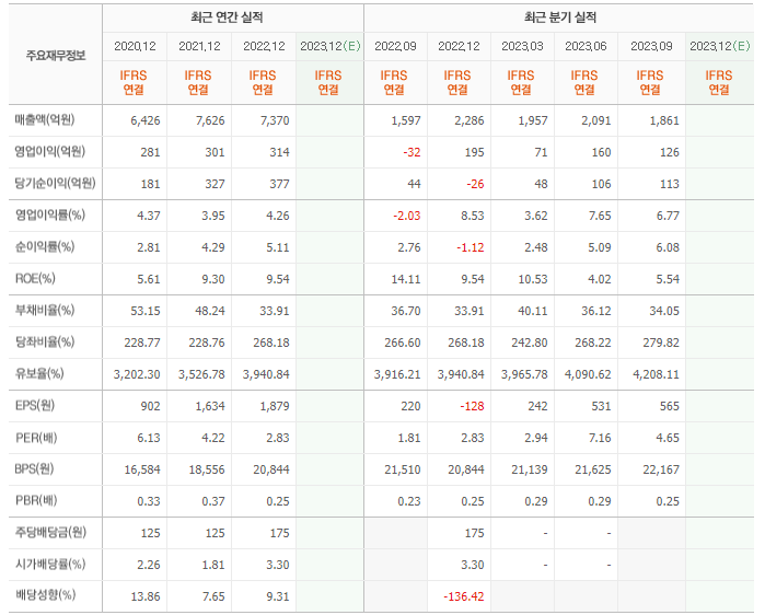 2022년 매출은 7370억, 영업이익은 314억, 당기순이익은 377억입니다. 그리고 영업이익률은 4.26%입니다.
