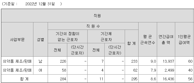 삼아제약 연봉 2022년 기준 공시자료
