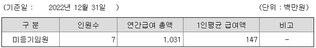 미등기임원의 평균연봉은 1억 4700만원이고 직원수는 7명입니다.