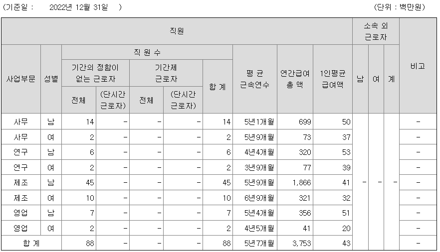 전체 평균연봉은 4300만원이고 직원수는 88명입니다.