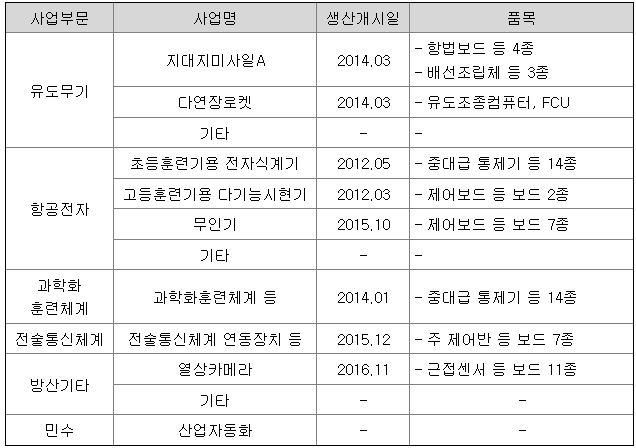 1. 주요 제품에 관한 내용