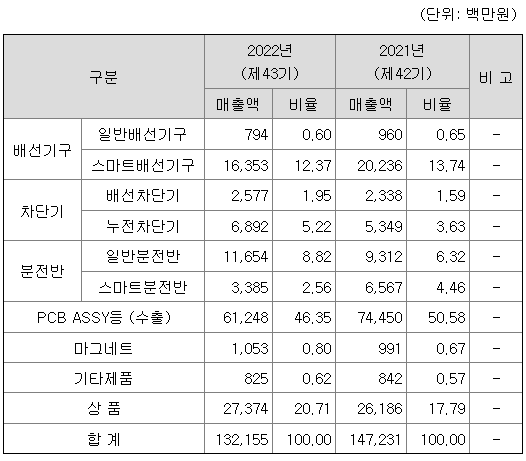 가. 주요제품 매출현황