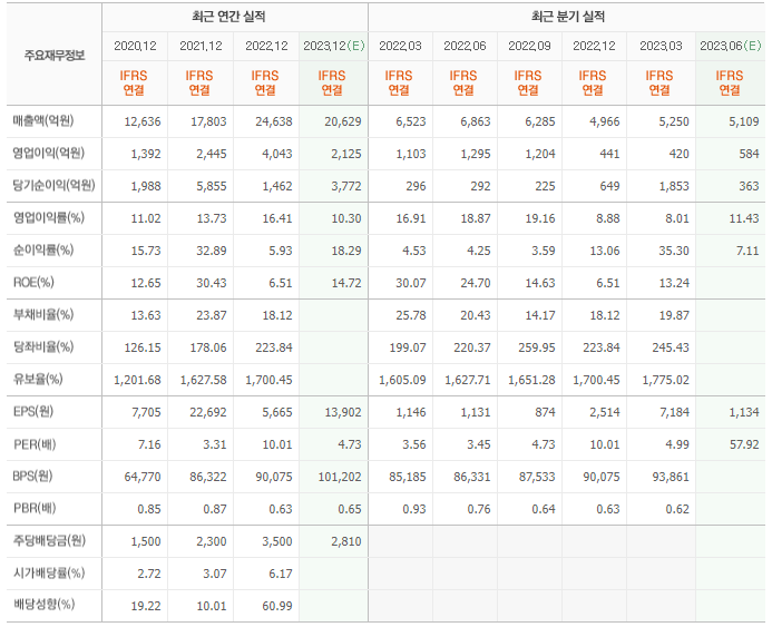 2022년 실적은 2조 4638억, 영업이익은 4043억입니다. 그리고 영업이익률은 16.41%입니다.