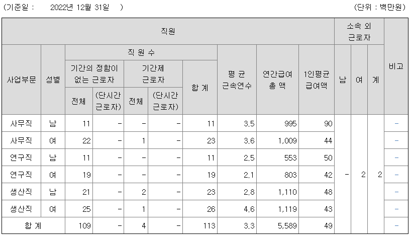 전체 평균연봉은 4900만원이고 직원수는 113명입니다.