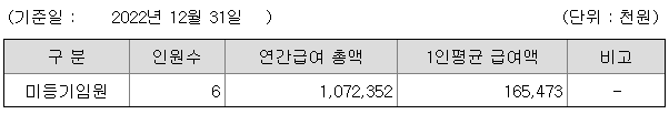 미등기임원의 평균연봉은 1억 6547만원이고 직원수는 6명입니다.