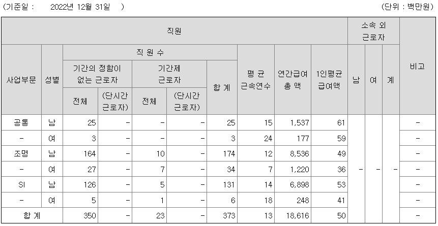 전체 평균연봉은 5000만원이고 직원수는 373명입니다.