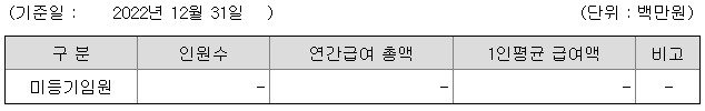 | 일월지엠엘 연봉 2022년 기준 공시자료 (0) | 2024.02.22 |