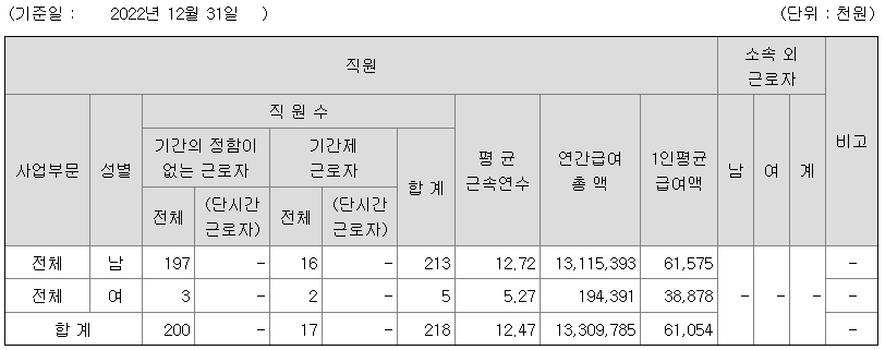 미등기임원의 평균연봉은 1억 1379만원이고 직원수는 8명입니다.