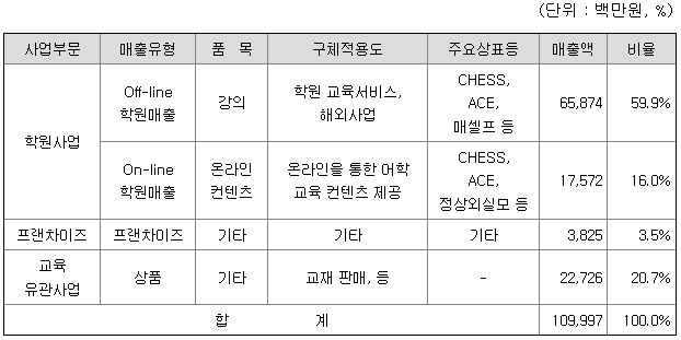 가. 주요 제품 등의 현황