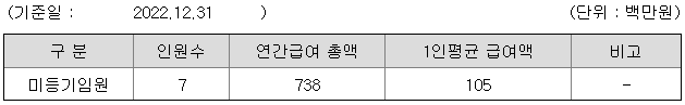 미등기임원의 평균연봉은 1억 500만원이고 직원수는 7명입니다.