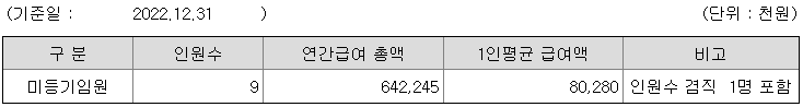 미등기임원의 평균연봉은 8028만원이고 직원수는 9명입니다.