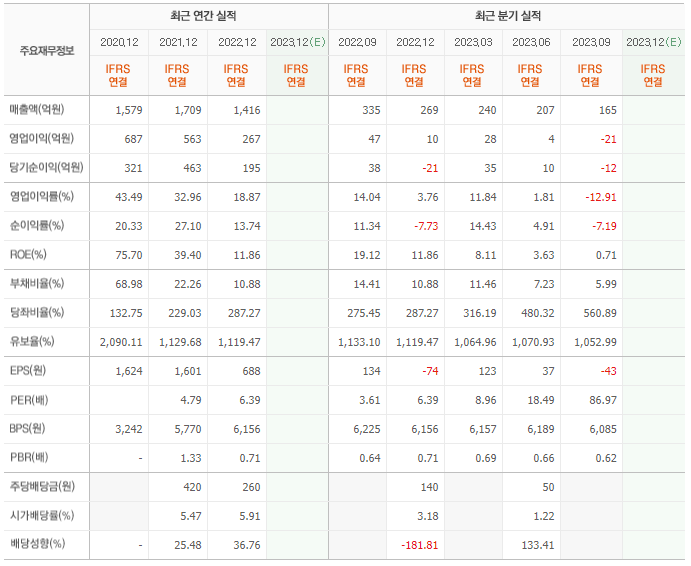 2022년 매출은 1416억, 영업이익은 267억, 당기순이익은 195억입니다. 그리고 영업이익률은 18.87%입니다.