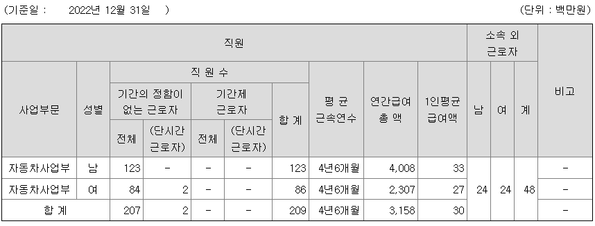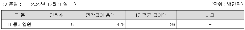 미등기임원의 평균연봉은 9600만원이고 직원수는 5명입니다.