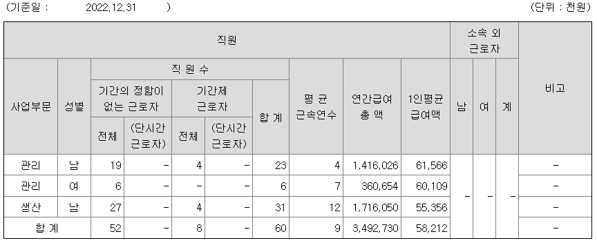 미등기임원의 평균연봉은 1억 2192만원이고 직원수는 4명입니다.