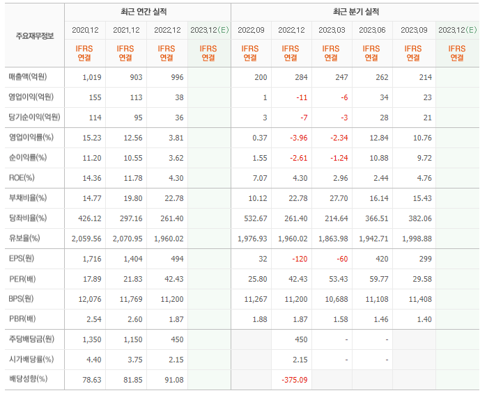 2022년 매출은 996억, 영업이익은 38억, 당기순이익은 36억입니다. 그리고 영업이익률은 3.81%입니다.