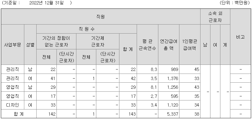 전체 평균연봉은 3800만원이고 직원수는 143명입니다.