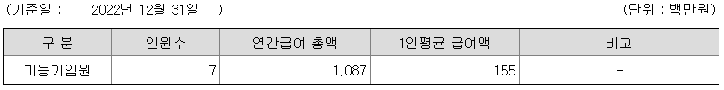 미등기임원의 평균연봉은 1억 5500만원이고 직원수는 7명입니다.