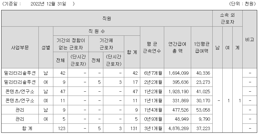 전체 평균연봉은 3722만원이고 직원수는 131명입니다.