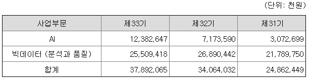 당사는 AI(인공지능)와 빅데이터를 중심으로 사업을 영위하고 있습니다.