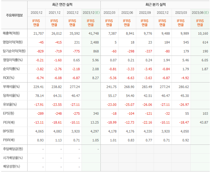 2022년 실적은 3조 5592억, 영업이익은 231억입니다. 그리고 영업이익률은 6.40%입니다.