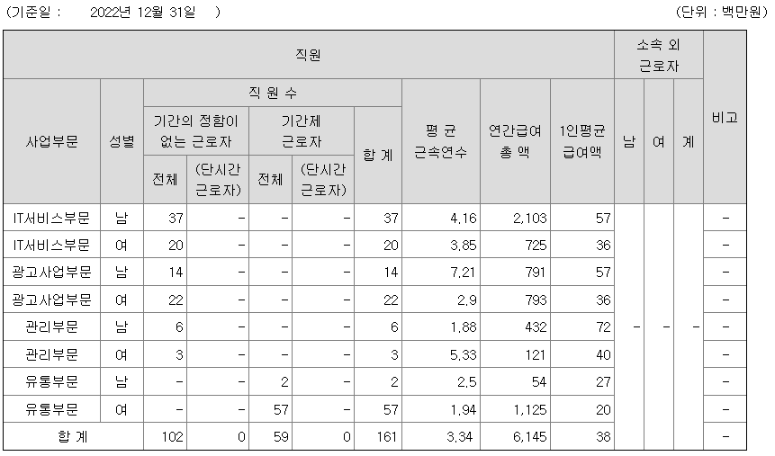 전체 평균연봉은 3800만원이고 직원수는 161명입니다.