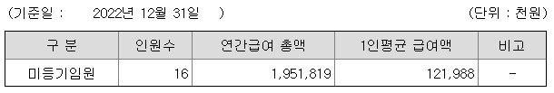 미등기임원의 평균연봉은 1억 2198만원이고 직원수는 16명입니다.