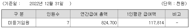 미등기임원의 평균연봉은 1억 1781만원이고 직원수는 7명입니다.