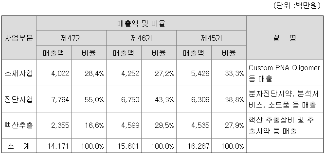 ㈜파나진은 기술혁신형 첨단 바이오 전문 벤처기업으로서 인공 유전자인 PNA를 주축으로 하는 소재 사업과 PNA 소재를 응용한 분자진단 사업 및 진단 자동화 사업을 주력사업으로 영위하고 있습니다. 특히 분자진단 분야에서 소재, 진단 시약 및 자동화 장비에 이르는 검사 전 과정에 걸쳐 필요한 기술을 확보하고 경쟁력 있는 제품들을 상용화하며 명실상부한 선도기업으로 성장하고 있습니다.