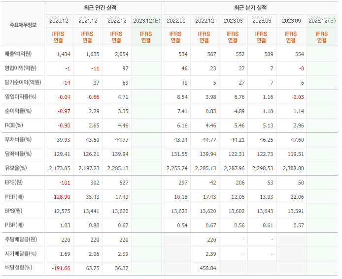 2022년 매출은 2054억, 영업이익은 97억, 당기순이익은 69억입니다. 그리고 영업이익률은 4.71%입니다.