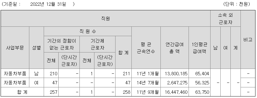미등기임원의 평균연봉은 1억 2224만원이고 직원수는 6명입니다.