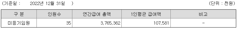 미등기임원의 평균연봉은 1억 758만원이고 직원수는 35명입니다.
